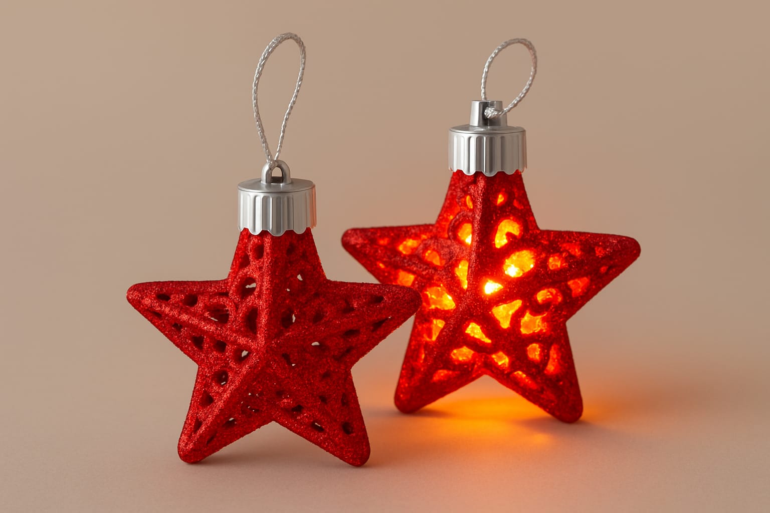 Porta magia e luce al tuo albero o alle decorazioni di casa con questa splendida stella natalizia rossa glitterata illuminata a LED. Il design tridimensionale con intagli decorativi permette alla luce di diffondersi creando un effetto caldo e brillante, perfetto per creare atmosfera durante le feste.