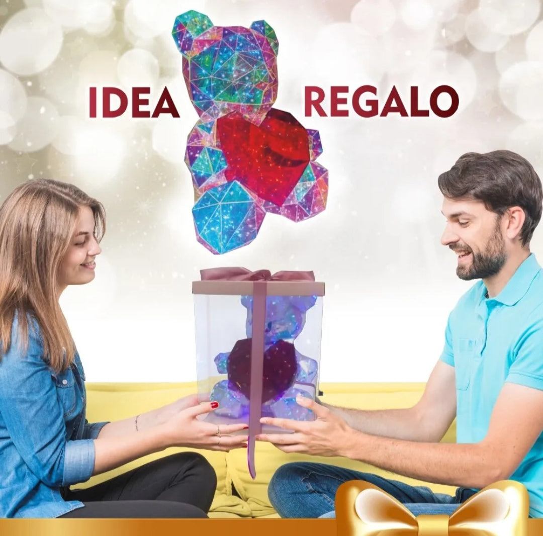 Un regalo che incanta! Questo dolcissimo orsetto con cuore luminoso ha un design effetto cristallo e luci LED multicolor che creano un’atmosfera romantica e raffinata. Perfetto come idea regalo per San Valentino, anniversari o decorazione per la casa.